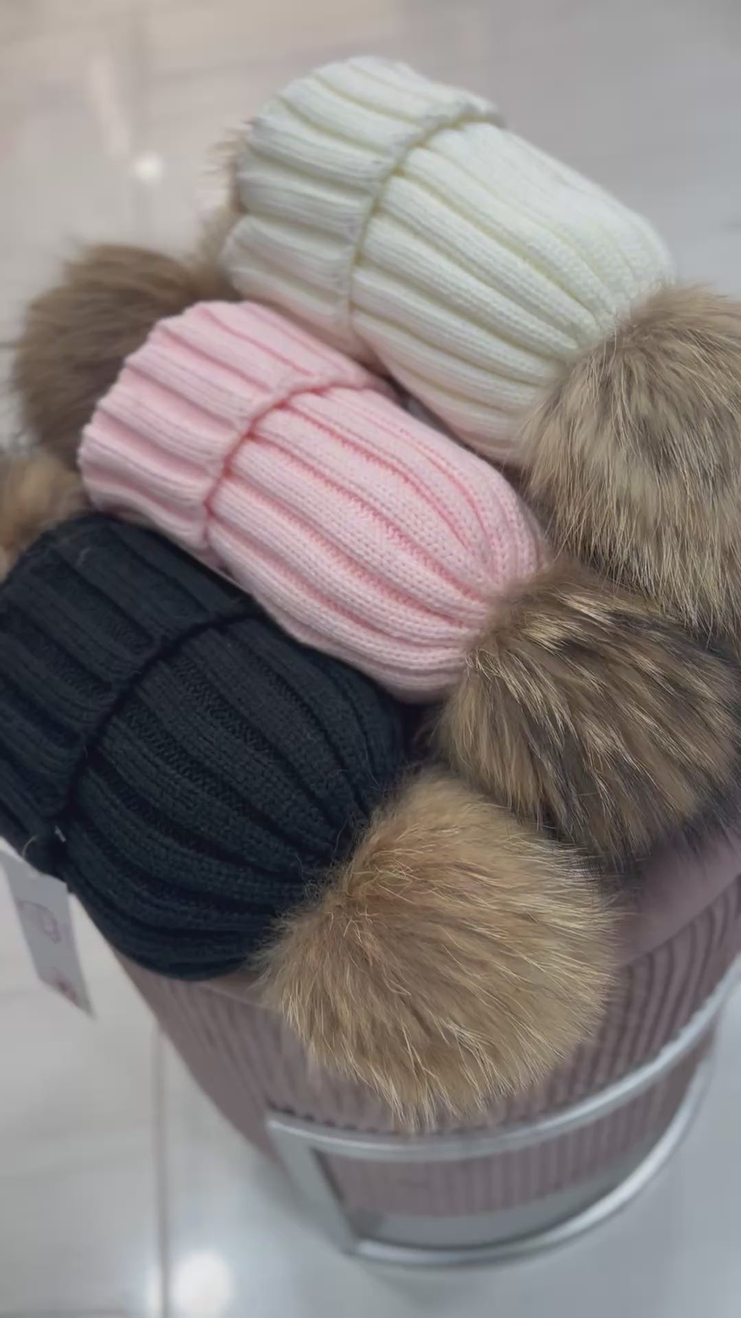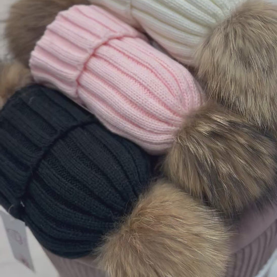 Căciulă moale și călduroasă, perfectă pentru sezonul rece. Realizată din tricot elastic, cu pompon din blană naturală ce se poate detașa. Mărime universală – potrivită pentru fetițe între 2 și 10 ani.